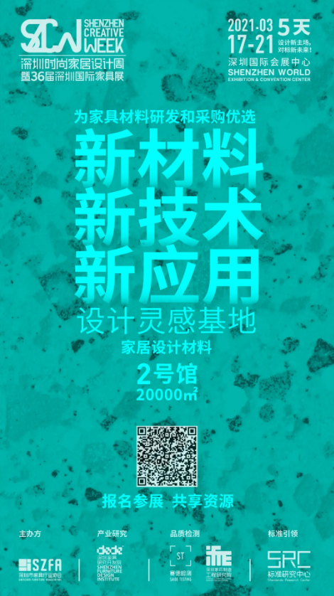 為幫助傳統(tǒng)家具制造業(yè)對(duì)接更多新材料和新技術(shù),加速實(shí)現(xiàn)生產(chǎn)及質(zhì)量的升級(jí),2021年3月17-21日,深圳時(shí)尚家居設(shè)計(jì)周暨36屆深圳國(guó)際家具展首次推出“設(shè)計(jì)靈感基地·家居設(shè)計(jì)材料”,向上游家具供應(yīng)鏈延伸,尋找優(yōu)質(zhì)原輔材料企業(yè)與優(yōu)質(zhì)家具企業(yè)對(duì)接、合作,共同發(fā)揮新材料與新技術(shù)優(yōu)勢(shì),驅(qū)動(dòng)家具制造競(jìng)爭(zhēng)力與創(chuàng)造力的更大提升。