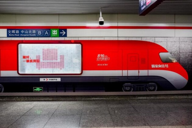 例如,在人來人往的杭州西湖文化地鐵站,顧家家居打造了一輛“向往號列車”,以5000張車票貼滿了總長28米的7節(jié)車廂,向人們展示了床墊、衣帽間、餐桌、櫥柜、組合沙發(fā)、按摩椅、單人沙發(fā)7種向往的生活場景,引來大批民眾圍觀和參與。