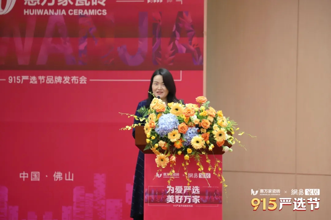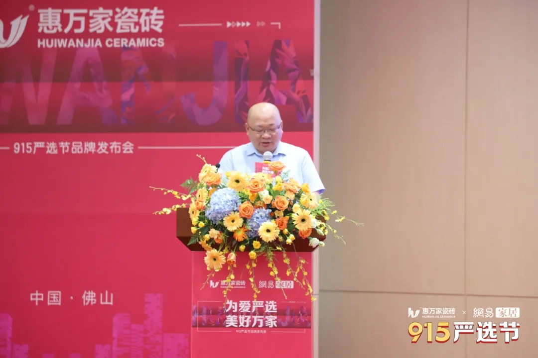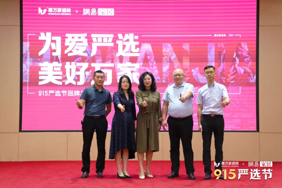 9月15日,惠萬(wàn)家瓷磚x網(wǎng)易家居“為愛(ài)嚴(yán)選 美好生活”915嚴(yán)選節(jié)發(fā)布會(huì)在佛山總部隆重舉行。新明珠集團(tuán)副總經(jīng)理企劃管理中心總經(jīng)理高頌、網(wǎng)易家居新聞中心主編鄭哲、惠萬(wàn)家品牌總經(jīng)理龐國(guó)慶、市場(chǎng)二部總監(jiān)招智斌、企宣部部長(zhǎng)程小麗及廣東地區(qū)經(jīng)銷(xiāo)商代表出席本次啟動(dòng)會(huì),與二十多家行業(yè)主流權(quán)威媒體共同見(jiàn)證915嚴(yán)選節(jié)正式發(fā)布!