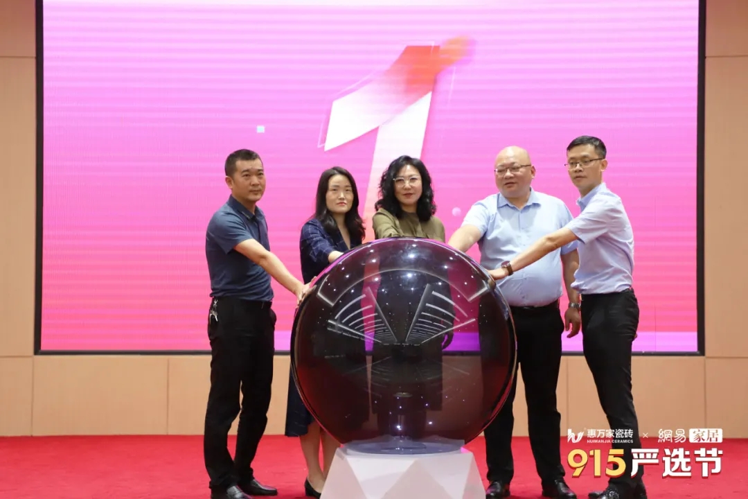 會(huì)上,由新明珠集團(tuán)高總、網(wǎng)易家居鄭哲女士、惠萬(wàn)家品牌龐總、市場(chǎng)二部招總及南?;萑f(wàn)家楊總,共同按下啟動(dòng)鍵,正式啟動(dòng)惠萬(wàn)家瓷磚915嚴(yán)選節(jié)。