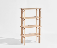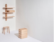 在被隔離的這段時間里,Shin意識到:“物體可以在不尋常的情況下幫助人們增強適應能力。”這一想法是他作品的基礎。在“宜家效應”(消費者會對自己創(chuàng)造的產(chǎn)品給予更高的價值)的指導思想下,他想到了一種半成品設計,用戶可以將部分家具進行組裝,以加強與家具間的互動。他創(chuàng)作了一張小桌子,通過巧妙而簡單的連接方式(無需膠水)進行組合,可變成一個堆疊式的貨架裝置,結(jié)構(gòu)靈活,適用于不同的空間。Shin選擇美國硬楓木,因為其木材的密度,可以在不壓碎木材纖維的情況下,將接頭移入和移出。