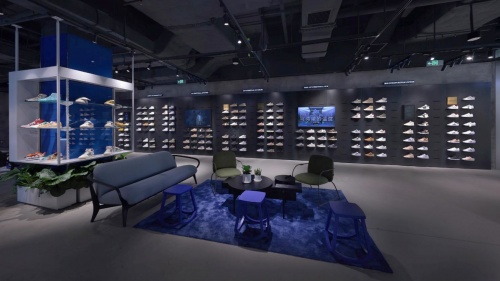一樓的弧形鞋墻,不同鞋款按照功能場景劃分陳列