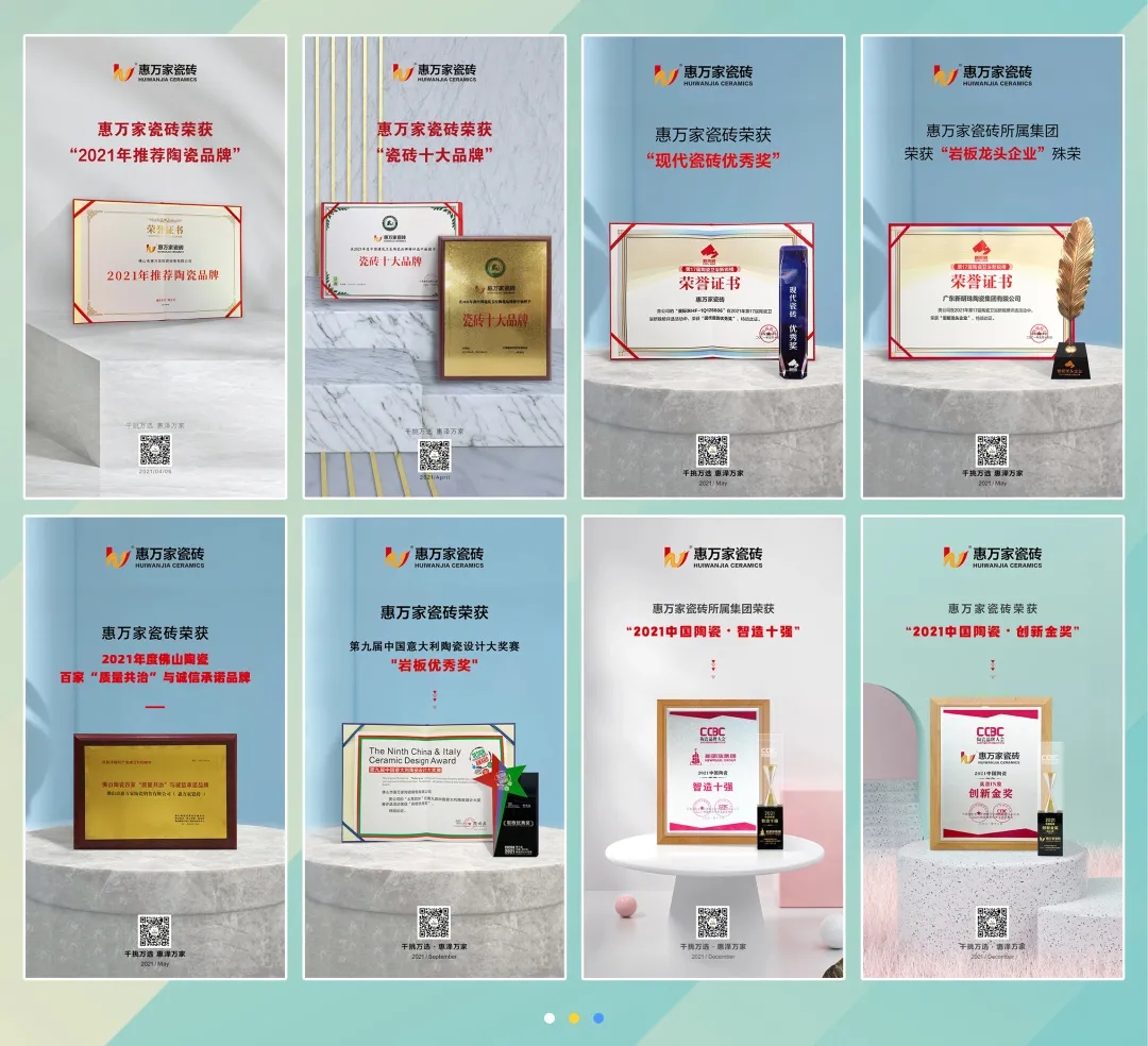 2021年惠萬(wàn)家一路披荊斬棘,得到了行業(yè)及市場(chǎng)的高度認(rèn)可,致力成為讓經(jīng)銷商驕傲、消費(fèi)者喜愛的實(shí)力瓷磚品牌