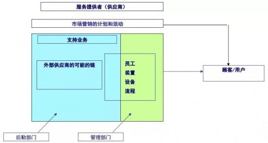 服務(wù)實(shí)際上存在于系統(tǒng)的運(yùn)轉(zhuǎn)中和人們的操作中,是無(wú)形的,也沒(méi)有顯性的結(jié)構(gòu),既不能被占有也不能被貯存,但是可以被供給。下圖是服務(wù)供應(yīng)的示意。