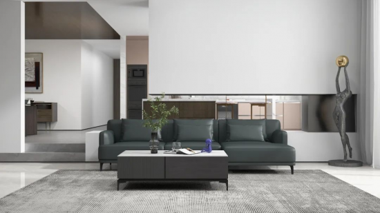 膚感皮的運(yùn)用,保留真皮的柔軟質(zhì)感,具有更強(qiáng)的韌性、透氣性,沙發(fā)的低矮構(gòu)型,從容之姿沉淀出自在閑適的意境,隨性落座,感知繁忙生活之外的愜意。