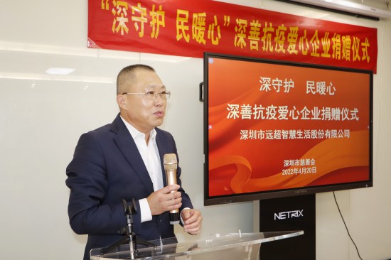 房濤執(zhí)行副會(huì)長代表深圳市慈善會(huì)對(duì)愛心企業(yè)遠(yuǎn)超智慧生活的捐贈(zèng)行為以及深圳市優(yōu)勢傳統(tǒng)類行業(yè)協(xié)會(huì)聯(lián)合黨委、深圳市家具行業(yè)協(xié)會(huì)凝聚愛心力量支援抗“疫”的善舉表示衷心感謝。房濤執(zhí)行副會(huì)長表示,遠(yuǎn)超智慧生活在企業(yè)自身生產(chǎn)經(jīng)營受疫情影響的情況下,仍能積極擔(dān)當(dāng)社會(huì)責(zé)任,捐助善款助力疫情防控,充分展現(xiàn)了“共克時(shí)艱”的大愛精神,展現(xiàn)了企業(yè)的良好風(fēng)貌。
