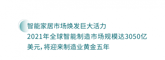 TrendForce集邦咨詢研究顯示,推升2021年全球智能制造市場(chǎng)規(guī)模至3050億美元,預(yù)期至2025年有望達(dá)4,500億美元,年復(fù)合成長(zhǎng)率達(dá)10.5%,將迎來(lái)制造業(yè)黃金五年。受新冠疫情影響,數(shù)字化轉(zhuǎn)型加速,以及遠(yuǎn)端作業(yè)、自動(dòng)化等需求提升,并攜帶5G、深化AI技術(shù)等加值服務(wù),隨著信息技術(shù)的迅速發(fā)展和使用智能家居家庭的增加、智能家居市場(chǎng)將煥發(fā)巨大的活力。