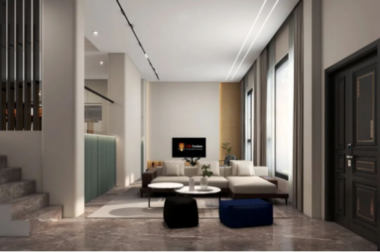 純色背景墻演繹留白藝術(shù),淺灰褐色大理石地板紋理自然,勾勒出空間質(zhì)感,光影浮動,更顯高雅純粹。CBD家居·黑金 | HZ111沙發(fā),雙色搭配呈現(xiàn)時尚感,薄方塊坐墊坐深寬大,營造悠然愜意的休憩氛圍,扶手智能科技化,帶來現(xiàn)代化生活體驗。