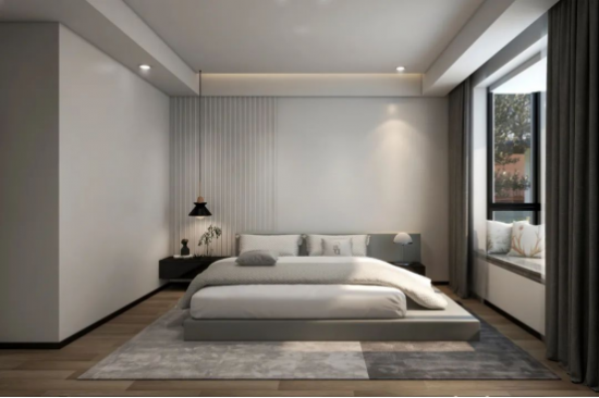 多種燈具裝飾下,次臥空間平添一抹溫柔,更具溫馨感,CBD家居·黑金 | HG005軟床,淺淡的設(shè)色與整體呼應(yīng),呈現(xiàn)秩序感,雙層床框加持,穩(wěn)固支撐,安穩(wěn)好眠。大飄窗開辟出另一個活動空間,豐富空間布局的層次感。