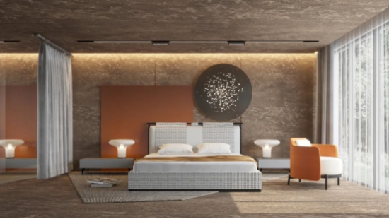 簡約化的色彩鋪墊、點(diǎn)亮,奠定輕奢感的室內(nèi)格調(diào),CBD家居·金豹 | J038軟床,皮質(zhì)靠包設(shè)計(jì)別致,疊加淺色千鳥格布套,與床身完美呼應(yīng),溫馨感十足,彰顯獨(dú)特的審美品味,優(yōu)雅寧靜的睡眠氛圍。