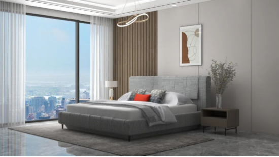 灰色中加一點(diǎn)藍(lán)調(diào),CBD家居·白金 | BS007軟床,悅現(xiàn)復(fù)古感,床身線條簡練流暢,布藝的柔韌性加持,多一份飄逸舒緩的氛圍感。