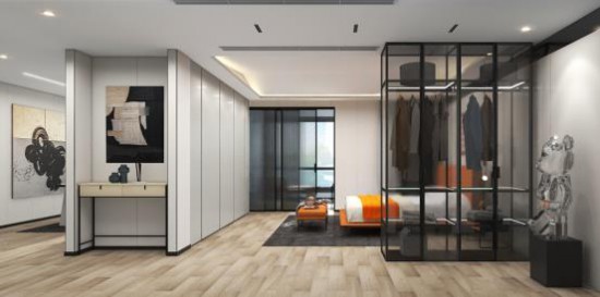 透明衣柜集收納性與美觀度于一身,提高空間質(zhì)感。CBD家居·金豹 | J076軟床,愛馬仕橙色時尚氣息濃郁,靜置其間,喚醒臥室的獨特魅力,一體式高床屏精巧別致,搭配纖薄床框、簡約床尾凳,營造怡然舒緩的睡眠氛圍。