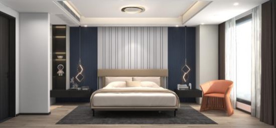 次臥空間深淺色相間處理,清雅靜謐,簡單陳設(shè)只滿足基本的睡眠功能,定制墻柜和懸空床頭柜,增加儲物空間。CBD家居·金豹 | J057軟床,淺褐色皮質(zhì)親和力更佳,床屏+飽滿雙靠包設(shè)計,打造藝術(shù)范就寢空間。