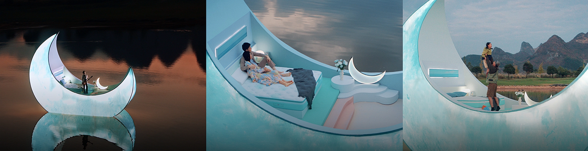 可以看到,在這條TVC之中,喜臨門別出心裁地將“蜜月”具現(xiàn)化成了一艘“超級(jí)蜜月船”,給予了用戶高識(shí)別度的視覺錘,讓每一位看過的消費(fèi)者都留下深刻的印象;同時(shí),喜臨門還將自己的床墊產(chǎn)品安置于船上,打造出「人無我有」的浪漫蜜月場(chǎng)景,將不限期蜜月和“總有喜臨門”一語雙關(guān)連接上;不僅如此,喜臨門還從不同的維度對(duì)蜜月重新定義,例如片子就從自我,情侶、家人三個(gè)方向剖析了“蜜月是可以不分時(shí)間地點(diǎn)空間,只要用心熱愛,就能把每一天都過成蜜月”的全新理念。