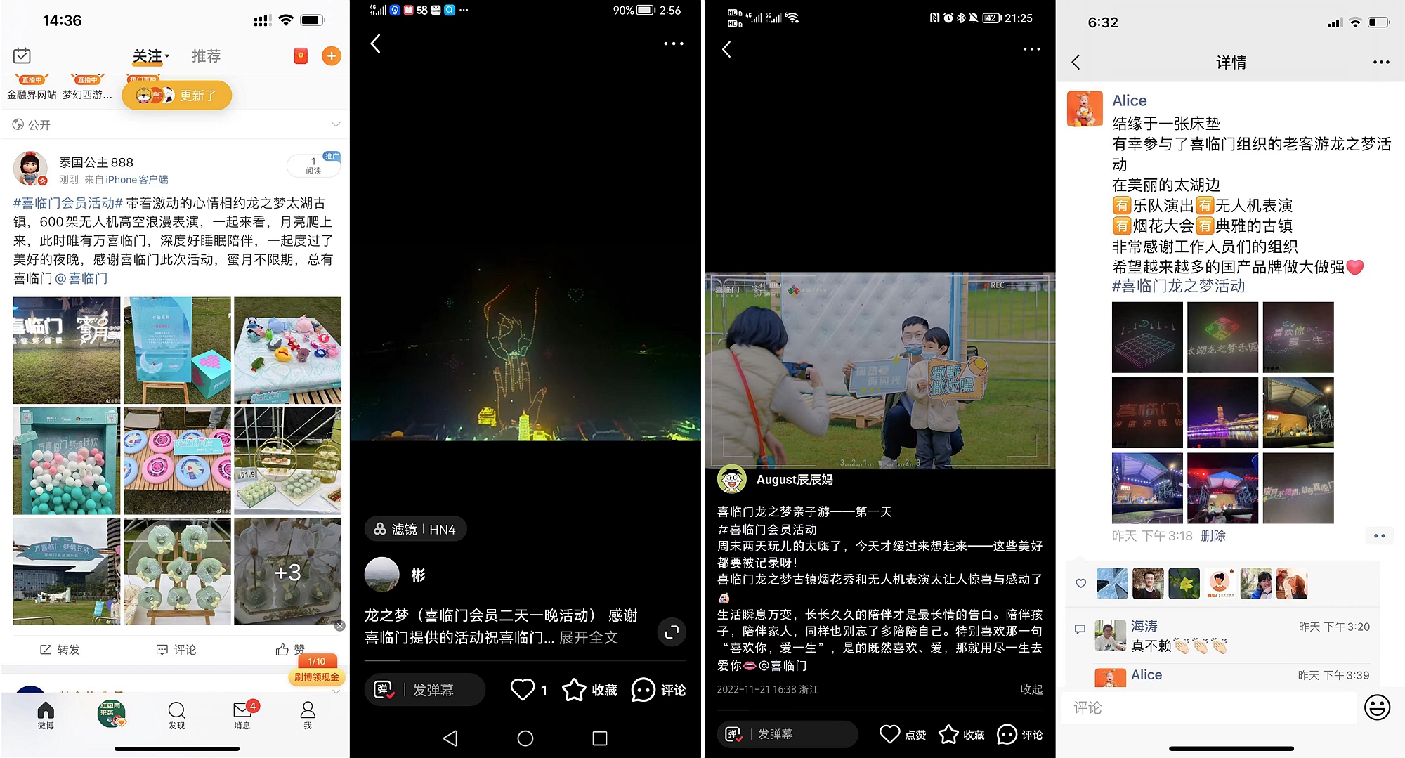 從用戶的真實(shí)反饋來看,這場(chǎng)跨界活動(dòng)無疑是深得人心的,在品牌與消費(fèi)者的溝通中實(shí)現(xiàn)了二次傳播與發(fā)酵。無論是微博微信朋友圈、還是抖音和小紅書,都有大批用戶的UGC內(nèi)容產(chǎn)生,字里行間表現(xiàn)出對(duì)喜臨門與龍之夢(mèng)跨界活動(dòng)的高度認(rèn)可,對(duì)喜臨門品牌“不限期蜜月”的認(rèn)可和贊同。