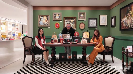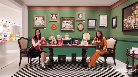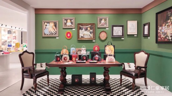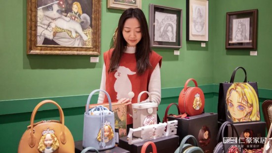 愛麗絲的夢(mèng)境是跳躍性的,故事也沒有很強(qiáng)的邏輯性,但在仁豪總部軟裝館展示作品的時(shí)候,仁豪家居結(jié)合第五大道系列產(chǎn)品(桌子和凳子),把這些藝術(shù)組畫打造一個(gè)整體,每幅畫之間都有關(guān)聯(lián),包括畫的內(nèi)容與畫框的造型都有關(guān)聯(lián),畫外有“畫”。其又與展板上、桌子上擺置的包包有關(guān)聯(lián),甚至光線、投影等元素都可以作為作品元素使用,給觀者恍惚間仿佛身臨其境的感覺。