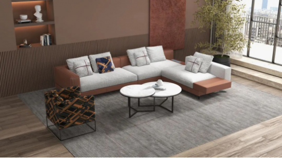 大膽將皮質(zhì)與布藝結(jié)合,CBD家居·黑金 | HZ039沙發(fā)獨(dú)有一番韻味,灰白色與橙色撞色搭配,經(jīng)典耐看,增強(qiáng)空間色彩層次。