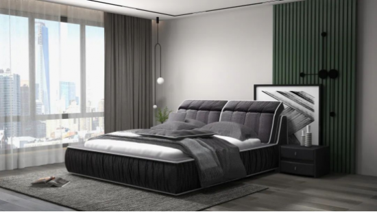另外,CBD家居善于將線條元素融入家具細(xì)節(jié)處,在軟床靠包的設(shè)計(jì)上,巧用橫縱線條、菱形拉點(diǎn)、褶皺點(diǎn)綴等技巧,提高舒適度的同時(shí),增強(qiáng)藝術(shù)美感。
