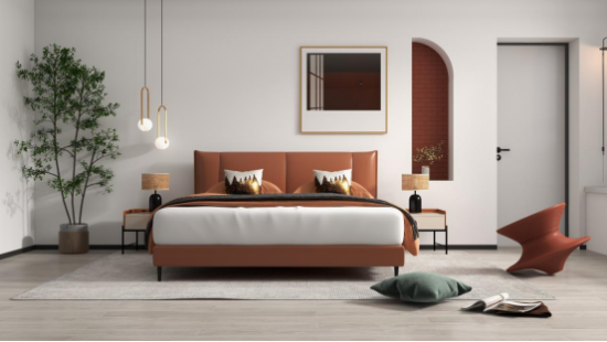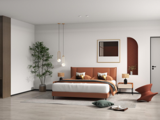 CBD家居·白金 | BS011軟床具有鮮明輪廓線條,與床頭寬邊設(shè)計共同凸顯現(xiàn)代時尚感,活力橙色賦予空間靈動之美,平衡居家環(huán)境色彩,在留白中點綴出臥室溫馨之意。