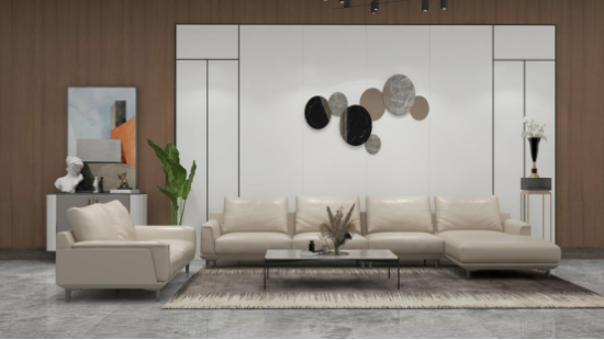 CBD家居·白金 | BS105沙發(fā)整體造型遵循簡約風格,柔和淡黃皮質(zhì)在燈光下自有一種高貴典雅氣質(zhì),靜立于客廳中給慵懶休閑空間增添一絲雅致。