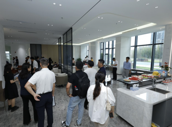 參觀結(jié)束,與會嘉賓來到左右云創(chuàng)谷1棟A座3A層共享會議中心舉行學(xué)習(xí)交流會。共享會議中心擁有不同規(guī)模和風(fēng)格的會議室,搭配商務(wù)休閑區(qū)、貴賓接待室、水吧、空中園林,配備無線投屏、會議平板、音響等全新會議設(shè)備,滿足園區(qū)企業(yè)多樣化的會議空間需求。