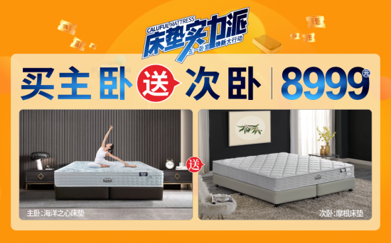 本次活動(dòng)期間,公司總部特批超值優(yōu)惠套餐,僅需8999元,即可購得主臥床墊并贈(zèng)送次臥床墊(海洋之心+摩根)。此外,還有B主臥套床(海洋之心+床架)+次臥套床(摩根+床架)等組合優(yōu)惠,讓您輕松打造舒適臥室。