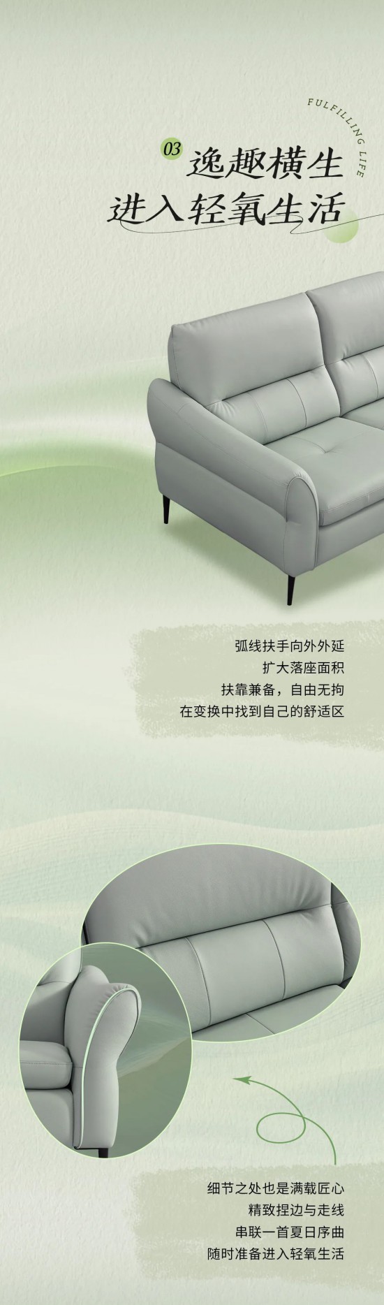 核心提示:弧線扶手向外外延,擴(kuò)大落座面積,扶靠兼?zhèn)?,自由無拘,在變換中找到自己的舒適區(qū)。
