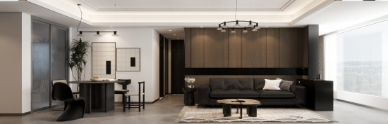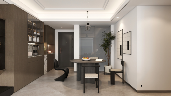 餐廳背靠定制柜,有序收納,以原木和黑色巧妙搭配,營造別致的藝術(shù)氣息,目之所及不止生活儀式感,更充滿時尚與高級。