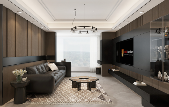 一體化空間里,定制柜整潔收納,整面電視墻更顯高奢,以恰到好處的色、質(zhì)配比烘托氛圍感,美觀實(shí)用之外,藝術(shù)范兒十足。