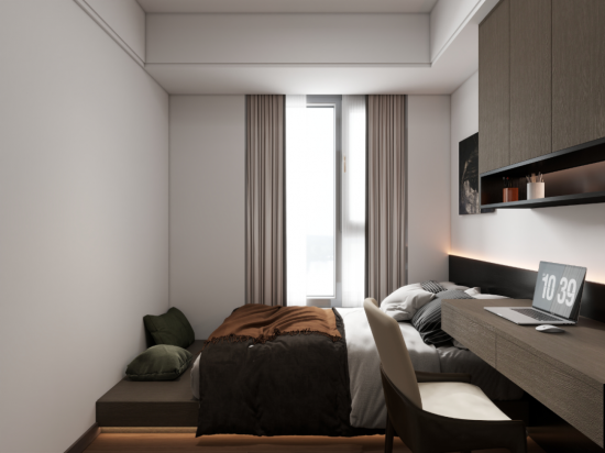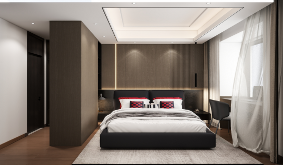 以遞進(jìn)式設(shè)計(jì)手法打造極簡實(shí)用居室,衣帽間-睡眠區(qū)-功能區(qū)排布,張弛有度,盡情享受舒適自在的私密時光。