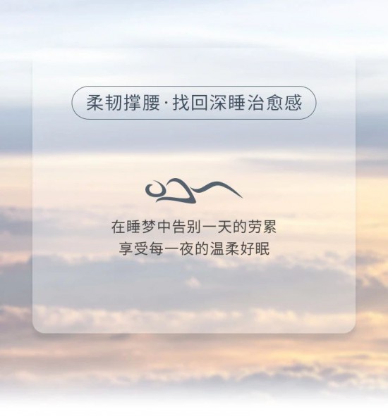 核心提示:柔韌撐腰·找回深睡治愈感,在睡夢(mèng)中告別一天的勞累,享受每一夜的溫柔好眠。