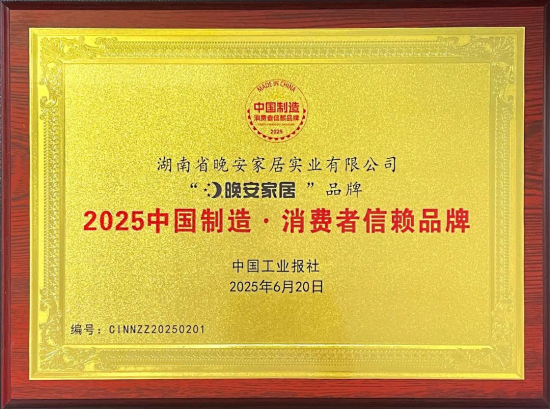 晚安家居集團榮獲“2025中國制造·消費者信賴品牌”