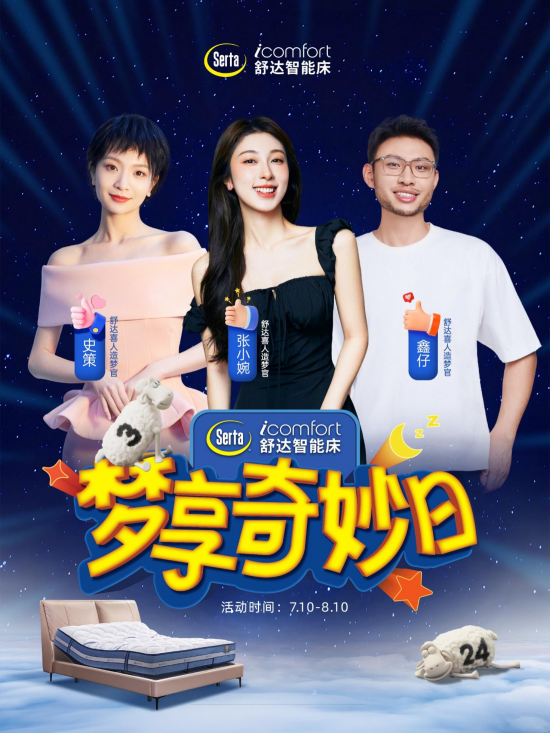 今年7月,舒達(dá)夢享日迎來連續(xù)第10年守護人們夢鄉(xiāng)、致敬人們夢想的時刻。張小婉、史策和鑫仔,這三位曾在《一年一度喜劇大賽》中憑借搞笑有梗的表演和出眾才華圈粉無數(shù)的“喜人”,將化身“舒達(dá)喜人造夢官”,攜手舒達(dá)共同打造別具一格的“夢享奇妙日”主題活動。