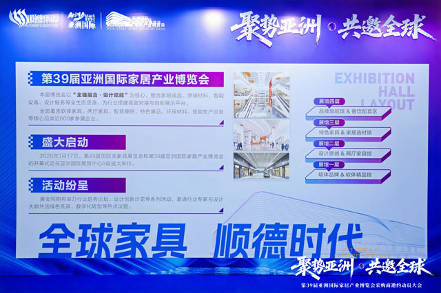 為全面提升第39屆亞洲國際家居產(chǎn)業(yè)博覽會(huì)的采購商規(guī)模與商貿(mào)對(duì)接效率,進(jìn)一步調(diào)動(dòng)參展企業(yè)邀約積極性,2026年1月6日,“聚勢(shì)亞洲·共邀全球”—第39屆亞洲國際家居產(chǎn)業(yè)博覽會(huì)采購商邀約動(dòng)員大會(huì)在亞洲國際展貿(mào)中心A館成功召開。政府部門及行業(yè)協(xié)會(huì)領(lǐng)導(dǎo)、參展企業(yè)代表、組委會(huì)負(fù)責(zé)人及媒體嘉賓齊聚一堂,共同謀劃展會(huì)新篇章,正式啟動(dòng)全球邀約工作。