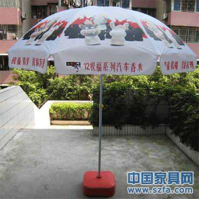 產品描述:超市鋪貨,少不了太陽傘。送太陽傘的好處是挺多的。一是店方樂意收,二是終端廣告效果明顯。現在越來越多的快銷品企業(yè)促銷少不了太陽傘,有些有實力的企業(yè),一次性定個幾百支,重要區(qū)域密集投放,廣告效果甚是明顯,這款百安居的太陽傘為標準配置,本雨傘廠,常年有備材料,生產周期短,交貨時間快