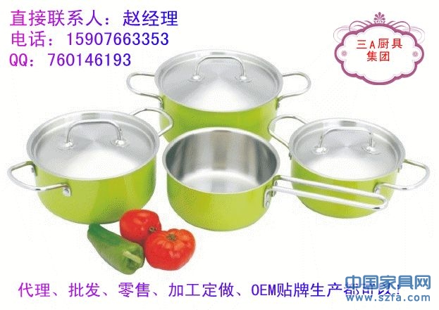 高檔不銹鋼廚具、湯鍋、炒鍋、煎鍋、奶鍋、蒸鍋、刀叉、碗筷碟子等眾多款式,批發(fā)、零售、代理還可以加工定做,OEM貼牌生產(chǎn)!廠家直銷?。?!櫥柜、炊具等產(chǎn)品配套的最佳選擇!消費(fèi)者最愛的禮品,贈品!