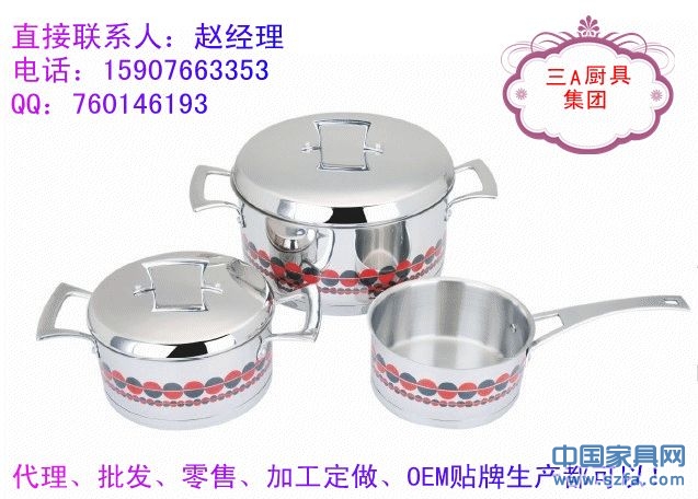 高檔不銹鋼廚具、湯鍋、炒鍋、煎鍋、奶鍋、蒸鍋、刀叉、碗筷碟子等眾多款式,批發(fā)零售、代理還可以加工定做,OEM貼牌生產(chǎn)!廠家直銷?。?!櫥柜、炊具等產(chǎn)品配套的最佳選擇!消費(fèi)者最愛的禮品,贈(zèng)品!