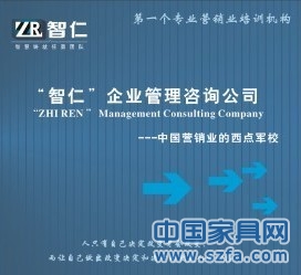 2012年因公司發(fā)展,在四川成都,設(shè)立:“智仁•中國(guó)”企業(yè)管理咨詢(xún)公司。本公司一直致力研究:家具行業(yè)銷(xiāo)售與管理、市場(chǎng)拓展與維護(hù)、企業(yè)文化建設(shè)與傳承。經(jīng)過(guò)數(shù)十年的研究、論證與各種戰(zhàn)略,戰(zhàn)術(shù)的實(shí)施,對(duì)家具行業(yè)所面臨的瓶頸以及全套解決方案已擁有大量的實(shí)戰(zhàn)型模塊,以及大量的實(shí)戰(zhàn)型人才。對(duì)解決:家具企業(yè)發(fā)展管理模塊建立、團(tuán)隊(duì)建設(shè)與打造、市場(chǎng)拓展與維護(hù)、企業(yè)文化建立與傳承、終端管理與建設(shè)等所有瓶頸與困難擁有一套:實(shí)際操作性最強(qiáng)、企業(yè)承擔(dān)成本最低、收效最快的整體解決方案。