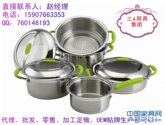 高檔不銹鋼廚具、湯鍋、炒鍋、煎鍋、奶鍋、蒸鍋、刀叉、碗筷碟子等眾多款式,批發(fā)、零售、代理還可以加工定做,OEM貼牌生產(chǎn)!廠家直銷!??!櫥柜、炊具等產(chǎn)品配套的最佳選擇!消費(fèi)者最愛的禮品,贈品!