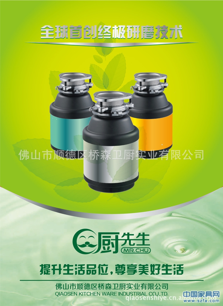 它是一種現(xiàn)代化的廚房電器,提供一種全新方法來處理現(xiàn)代家庭中的食物垃圾,安裝于廚房水槽下,并與排水管相連:Mr. 食物垃圾處理機通過改變食物垃圾的形態(tài)來進行及時的食物垃圾無害化處理,能夠?qū)⑹澄锢幚沓杉毿☆w粒,直接從下水道排出,可實現(xiàn)及時、方便、迅捷的廚房清潔;避免食物垃圾堆積而滋生病菌、蚊蟲和異味,有效優(yōu)化家居環(huán)境,并徹底解決下水道容易堵塞的問題。
