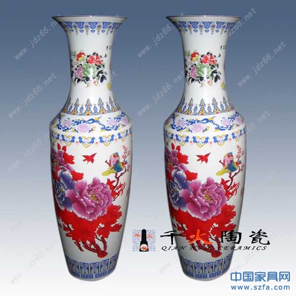 陶瓷大花瓶全手工繪制,高白泥手工拉胚,高白釉上底色,整個(gè)生產(chǎn)工序要經(jīng)過(guò)淘泥、摞泥、拉坯、修坯、繪畫、上釉、燒窯、成瓷等近七十道工藝才能制做完成,并可根據(jù)客戶特殊需要在大花瓶身上可燒制LOGO、公司名稱、人名、贈(zèng)言,紀(jì)念用語(yǔ),年月日等。本產(chǎn)品多用于大廳、門廳、客廳等擺設(shè),主要適合于開(kāi)業(yè)禮品,大樓建筑落成、工程竣工開(kāi)業(yè)、奠基典禮、酒店賓館陳設(shè)、企事業(yè)單位喬遷、周年紀(jì)念 、學(xué)校校慶、搬遷新居等。