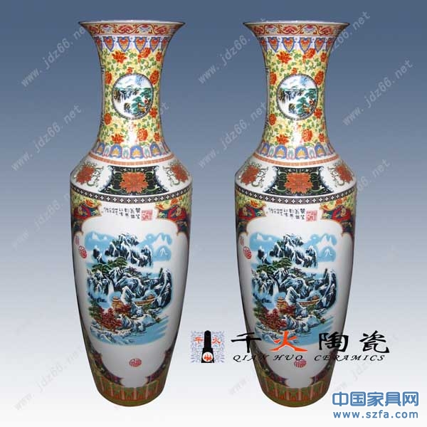 陶瓷大花瓶全手工繪制,高白泥手工拉胚,高白釉上底色,整個生產(chǎn)工序要經(jīng)過淘泥、摞泥、拉坯、修坯、繪畫、上釉、燒窯、成瓷等近七十道工藝才能制做完成,并可根據(jù)客戶特殊需要在大花瓶身上可燒制LOGO、公司名稱、人名、贈言,紀念用語,年月日等。本產(chǎn)品多用于大廳、門廳、客廳等擺設,主要適合于開業(yè)禮品,大樓建筑落成、工程竣工開業(yè)、奠基典禮、酒店賓館陳設、企事業(yè)單位喬遷、周年紀念 、學校校慶、搬遷新居等。