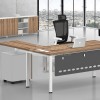 金屬配件:封邊為上海“兄奕”PVC,封邊2mm厚度PVC,采用緩沖鉸鏈,可重復使用5年,所有抽屜導軌均采用三節(jié)導軌,使得抽屜的壽命更加持久,拉手采用不銹鋼材質,美觀大方。屏風為25mm厚鋁合金,表面為PVC花紋,桌面帶有鋁合金線盒。