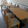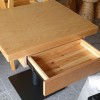 木桌子是夾板貼水曲柳面板,經(jīng)40噸冷壓機(jī),高壓壓平整,后經(jīng)5mm白臘實木封邊,原木色PU環(huán)保油漆處理,桌面防水清潔.桌面底部為啞白色,帶450*250*120mm活動抽屜.可放紙巾,筷子,牙簽。8mm黑色防銹鐵板桌腳底盤配黑色防銹76mm管.