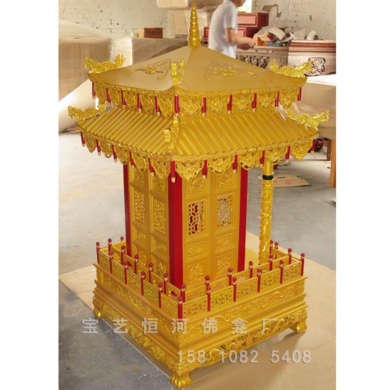 金色雙層屋檐神轎式佛龕方形屋頂仿古建神龕
