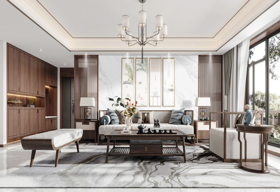 新中式客廳背景墻設(shè)計(jì)效果圖(上)