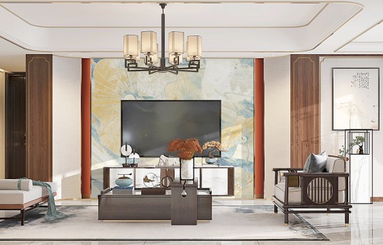 新中式客廳背景墻設(shè)計(jì)效果圖(中)