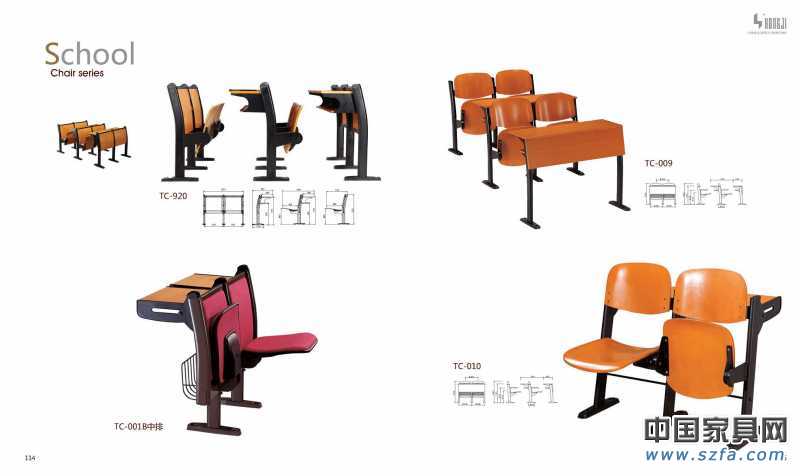 椅座、椅背:采用多層板經(jīng)模具一次熱壓成型,面貼防火板,后經(jīng)PU封邊精制而成。牢固耐用,不退色。