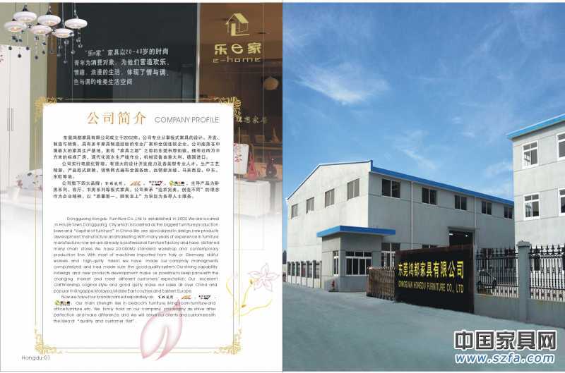 東莞鴻都家具有限公司成立于2002年,工廠座落于聞名遐爾的“家具之都”東莞市厚街鎮(zhèn)。公司自成立以來,一直秉承“誠信、謙虛、勤力、卓越”的企業(yè)精神和“品質(zhì)卓越,引領(lǐng)健康、個(gè)性生活”的企業(yè)追求,始終堅(jiān)持“誠信第一,服務(wù)至上”的經(jīng)營理念,積極導(dǎo)入先進(jìn)的管理模式,實(shí)行科學(xué)化、規(guī)范化管理,使產(chǎn)能效益得到最大的提高,實(shí)施以人為本的“能本管理”,充分發(fā)揮每位員工的聰明才智,營造了一支充滿激情和創(chuàng)造力的專業(yè)團(tuán)隊(duì)。