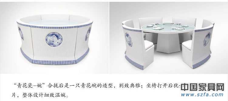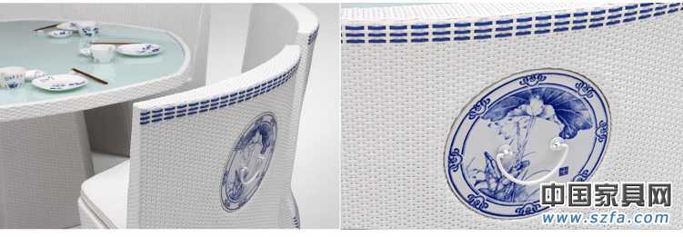 新款【觀唐】花園戶外家具青花瓷-婉 編藤瓷片鑲嵌休閑餐桌藤椅